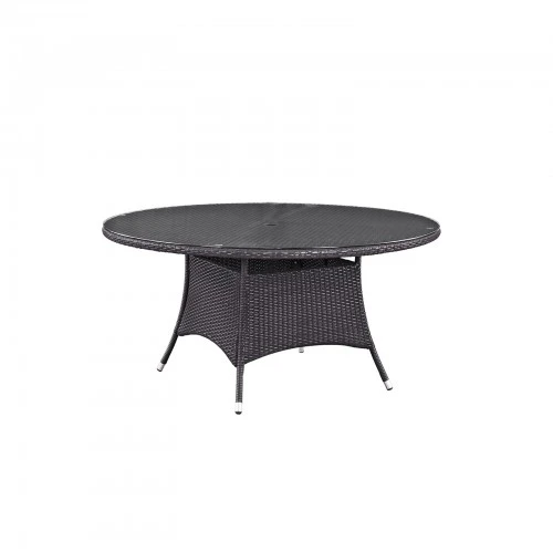 Gather stages of sensitivity with the Convene outdoor sectional series. Made with a synthetic rattan weave and a powder-coated aluminum frame, Convene is a versatile outdoor collection that shifts and combines according to the spontaneous needs of the moment. Outfitted with all-weather fabric cushions, leave a positive impression on friends and family while enhancing your patio, backyard or poolside repast in this series of palpable distinction. This installment of the series is an Outdoor Patio Dining Table. Set Includes: One – Convene 59″ Round Dining Table